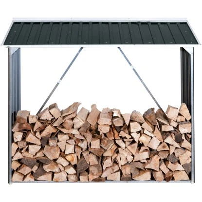 Gerade in den kälteren Monaten des Jahres unterstreicht ein Kamin die Lebensqualität. Darüber hinaus ist Kaminholz durch die hohen Energiepreise und das gestiegene Umweltbewusstsein wieder zu einem begehrten Brennstoff geworden. Das Tepro Kaminholzregal bietet hier einen guten Schutz vor Regen und Schnee. Bei der Lagerung im Freien übernehmen Sonne und Wind den Trocknungsprozess. Somit kann das Kaminholz im eigenen Garten in aller Ruhe geschützt trocknen bis es genügend Feuchtigkeit verloren hat, um es zum Verfeuern einzusetzen. Der Kaminholzunterstand ist durch die Materialeigenschaften des verzinkten Stahlbleches sehr lange haltbar und praktisch wartungsfrei. Die besondere Pulverbeschichtung schützt es vor der Zersetzung, die Metall befällt, wenn es lange Zeit Niederschlägen ausgesetzt ist.